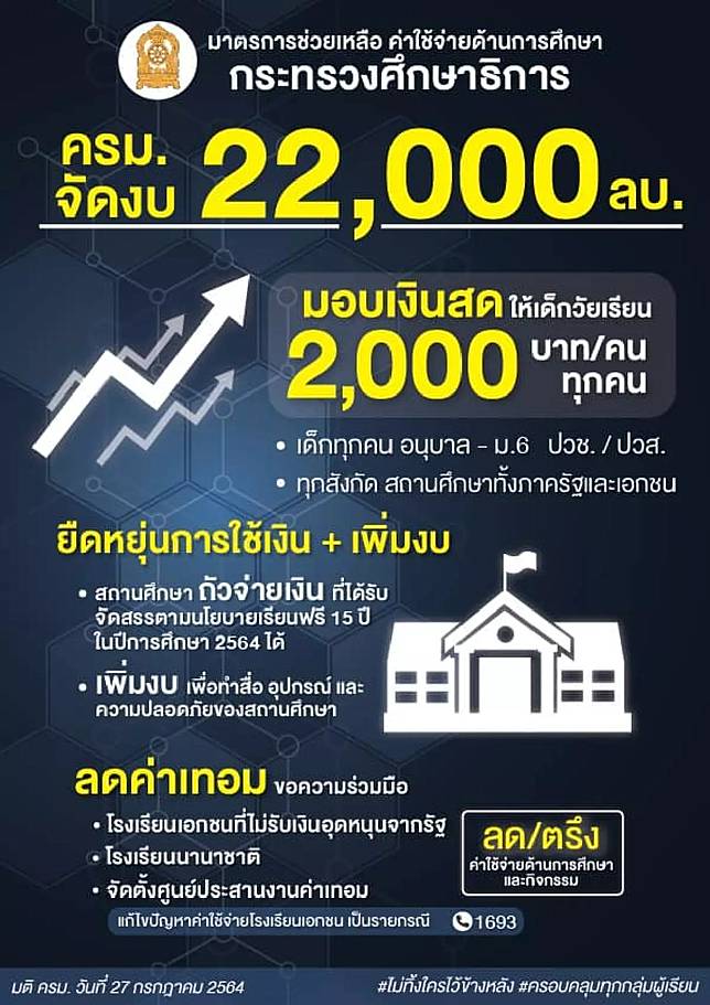 เช็คเงินนักเรียน 2,000 ขั้นตอนเช็คสิทธิ์ วันจ่ายเงินเยียวยา นักเรียนเอกชนตรวจสอบ.
